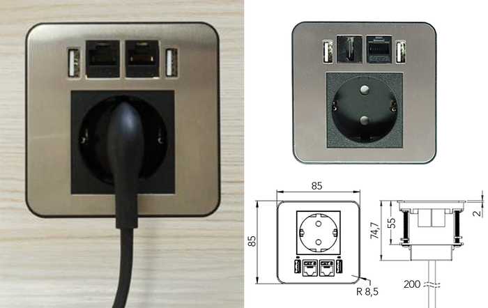 | 022472 | Noir/inox | 1 prise Schuko + 2 chargeurs USB A (5V/2,15A) | 1 pièce |