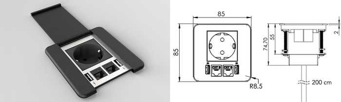 | 022474 | Zwart/inox | 1 stopcontact met randaarding (Schuko) + 2 USB A chargers (5V/2,15A) | 1 stuk |