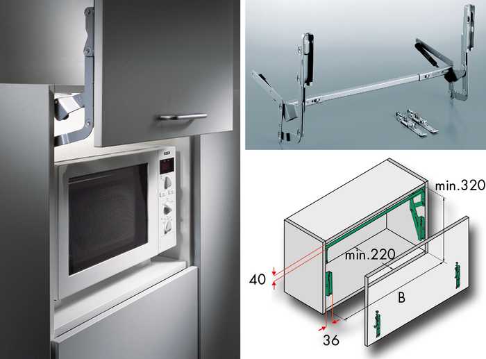 - met 2 gasdrukveren- deur liftbeslag met onzichtbare frontbevestiging- in de breedte aanpasbaar