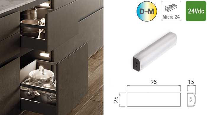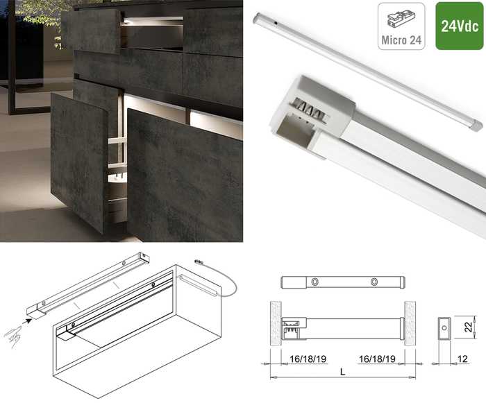 | 048420 | Aluminium | 600 mm | Warm wit, 3000°K | 1050 lux/1080 lm | 24Vdc | 7,2W | 1 stuk |