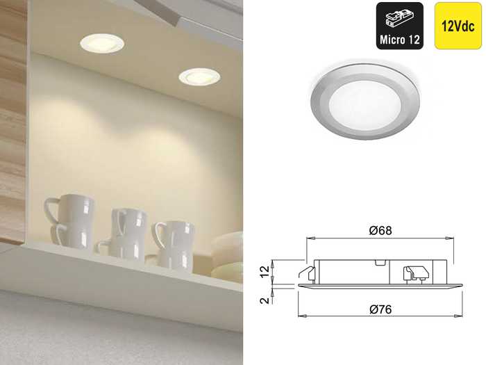 | 041628 | Aluminium | Natuurlijk wit, 4000°K | 360 lux | 12Vdc | 3W | 1 stuk |