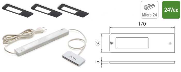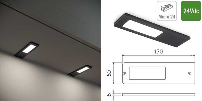 | 048407 | Zwart | Super warm wit, 2700°K | 450 lux/300 lm | 24Vdc | 5W | 1 stuk |