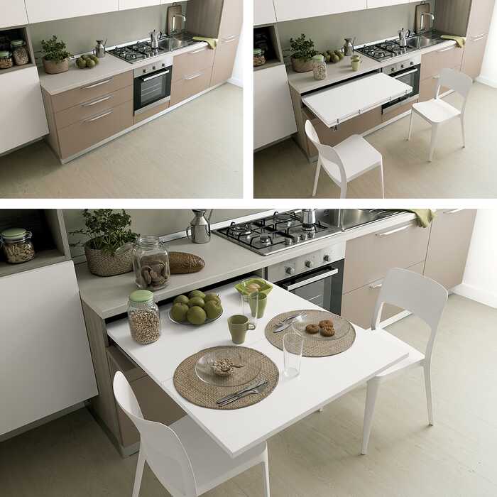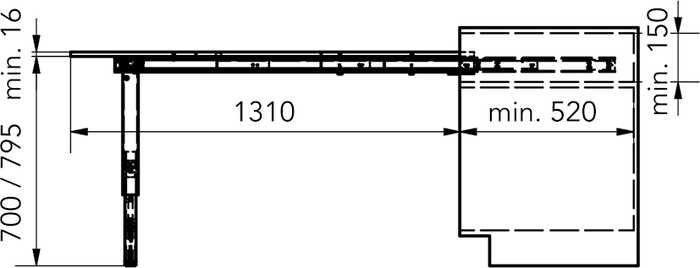 - het uittrektafelbeslag wordt zonder werkblad