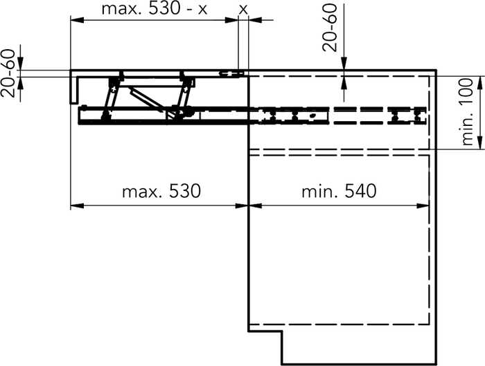 - inbouwdiepte: min. 540 mm
