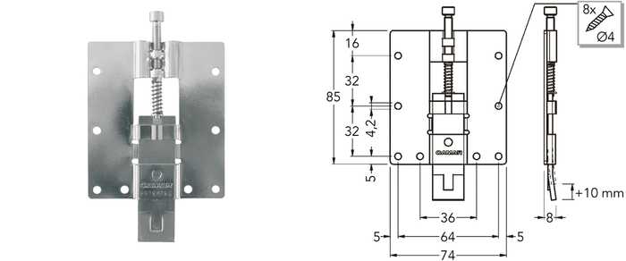 Bevestigingsplaat type 892.AC.Z2.80.26 voor dubbel regelbare paneelbevestiging bovenzijde