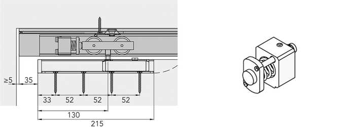 Deurstopper met veer voor Hawa schuifdeurbeslag type Junior 100/B Pocket