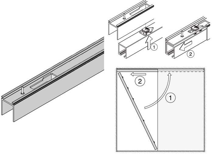 Optionele montagerail en toebehoren voor Hawa schuifdeurbeslag type Junior 100/B Pocket