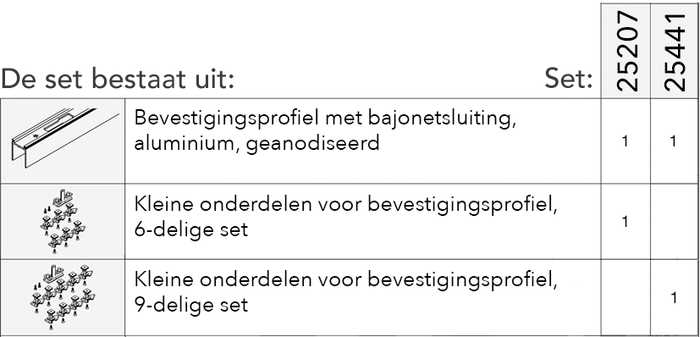 - kunststof glijprofiel afzonderlijk te bestellen