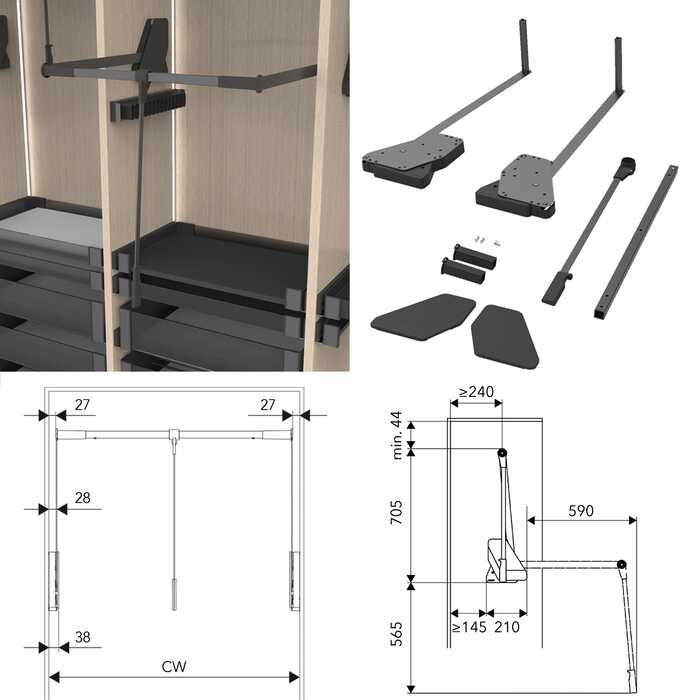 | Bestelnr. | Afwerking | Kastbreedte | Binnenbreedte kast (CW) | Nuttige lading (min./max.) | Draagkracht | Besteleenh. |