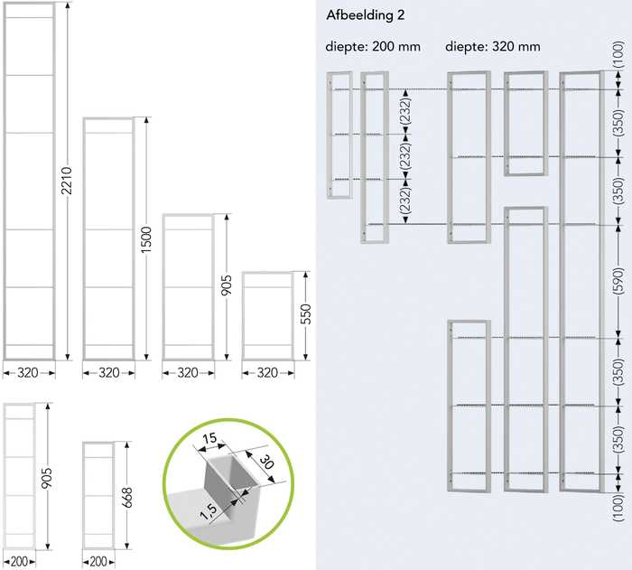 - de ladders met diepte 320 mm kunnen