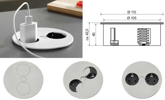 | 022242 | Inox look | 2 stopcontacten met randaarding (Schuko) | 105 mm | 1 stuk |