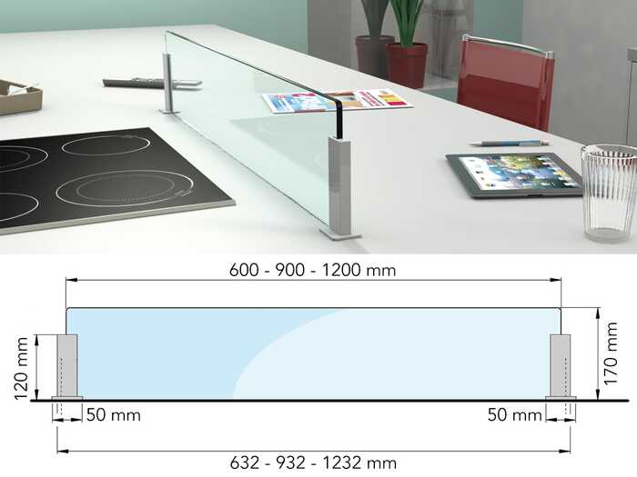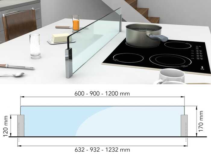 | 041463 | Verre/aluminium | Kit écran anti-projection | 1200 mm | 1232 mm | 1 pièce |