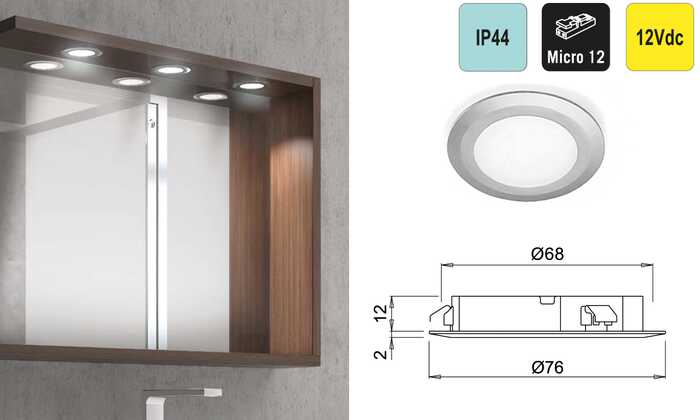 | 041629 | Chroom | Natuurlijk wit, 4000°K | 360 lux | 12Vdc | 3,4W | 1 stuk |