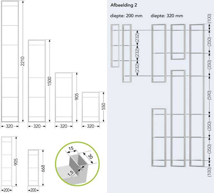 (legplanken zelf te voorzien)