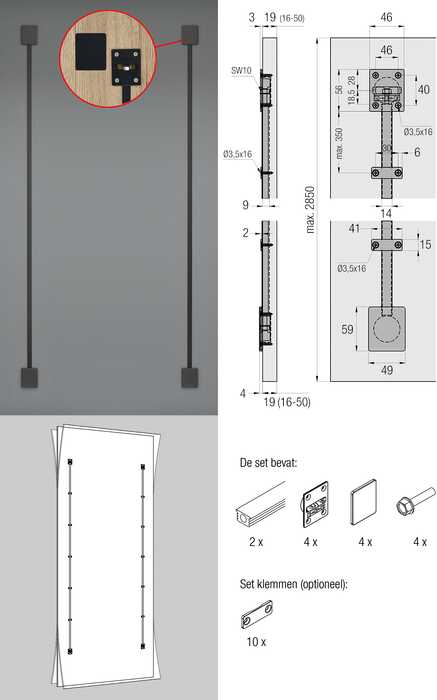 | 047081 | Zwart | 2 deurrechters | 2240-2850 mm | 1 set |